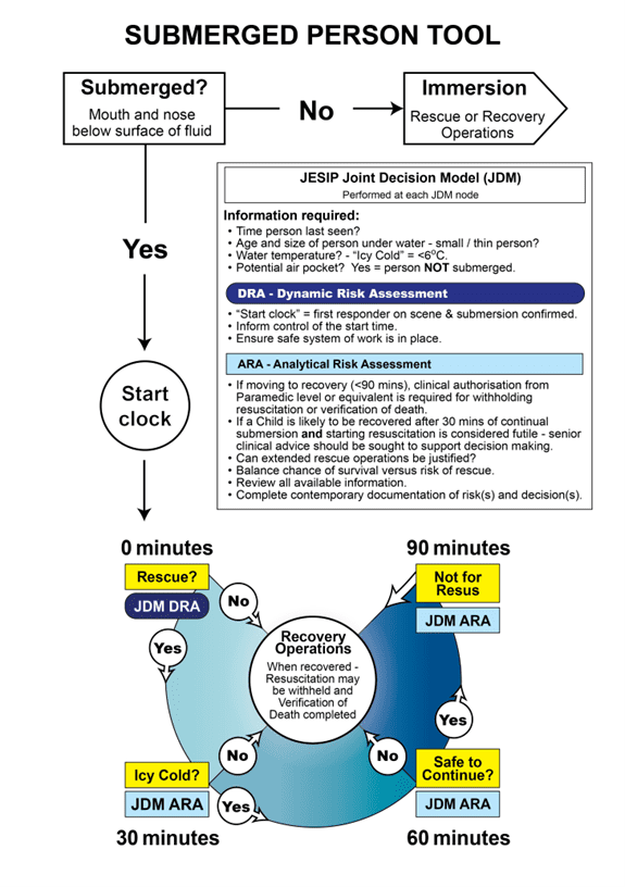 The tool is designed to give a submerged person every reasonable chance of rescue and resuscitation and is balanced against the risk of harm to personnel when carrying out rescues. The following content has been provided to assist fire and rescue services in applying the tool, and to support incident commanders who participate in the joint decision-making process.