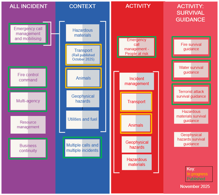 Operational Guidance is the foundation for developing operational policies, procedures and training for personnel to deal with incidents effectively and safely. It is ‘industry good practice’ for everybody in fire and rescue services to draw on.